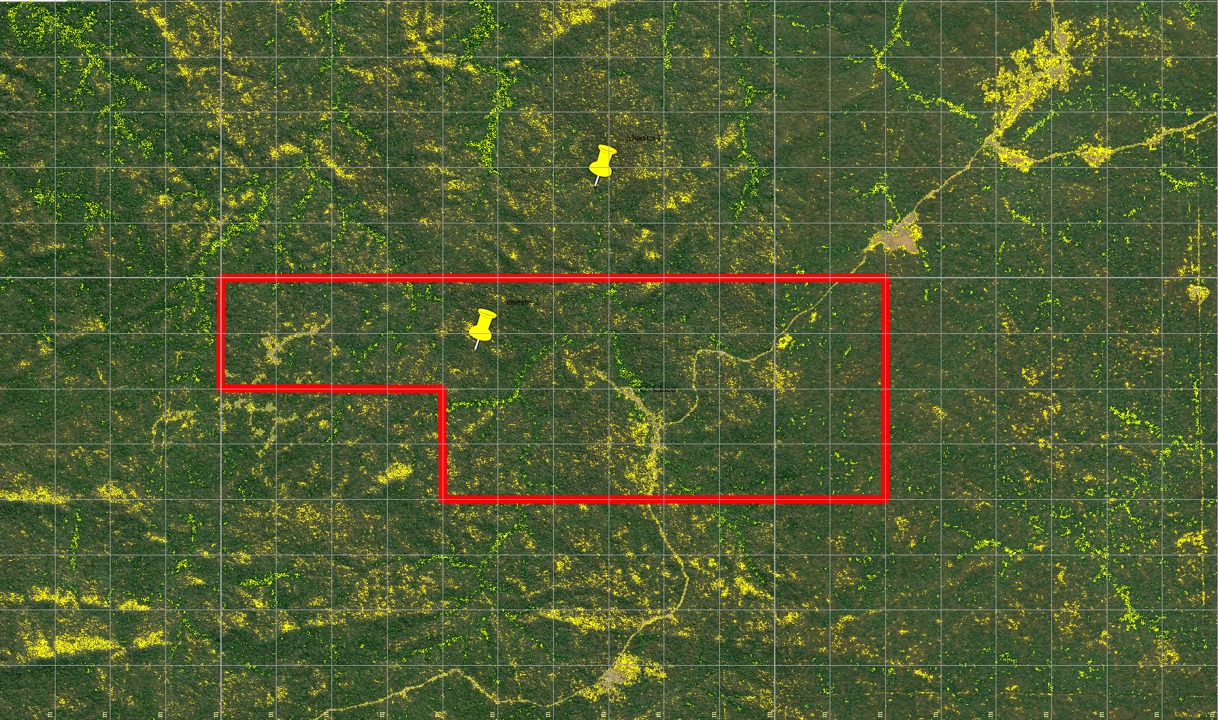 - Concession aerial view — Aerial perspective of GOLDN mining concession showing scale of operations.