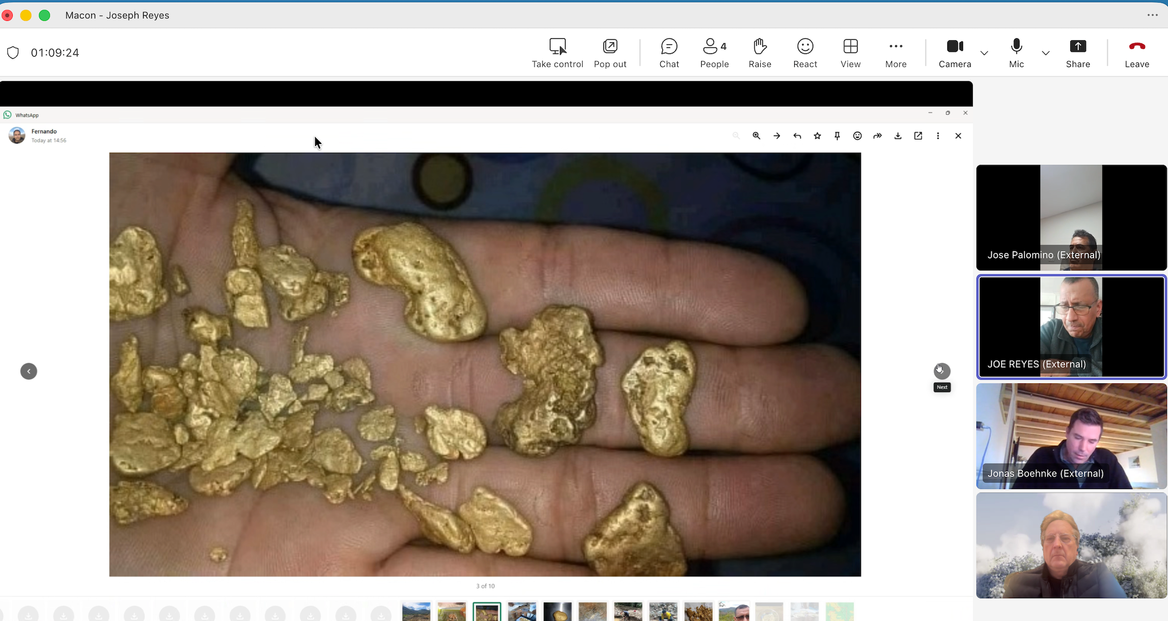 - Gold recovery results — Video showing gold recovery results from recent mining operations.